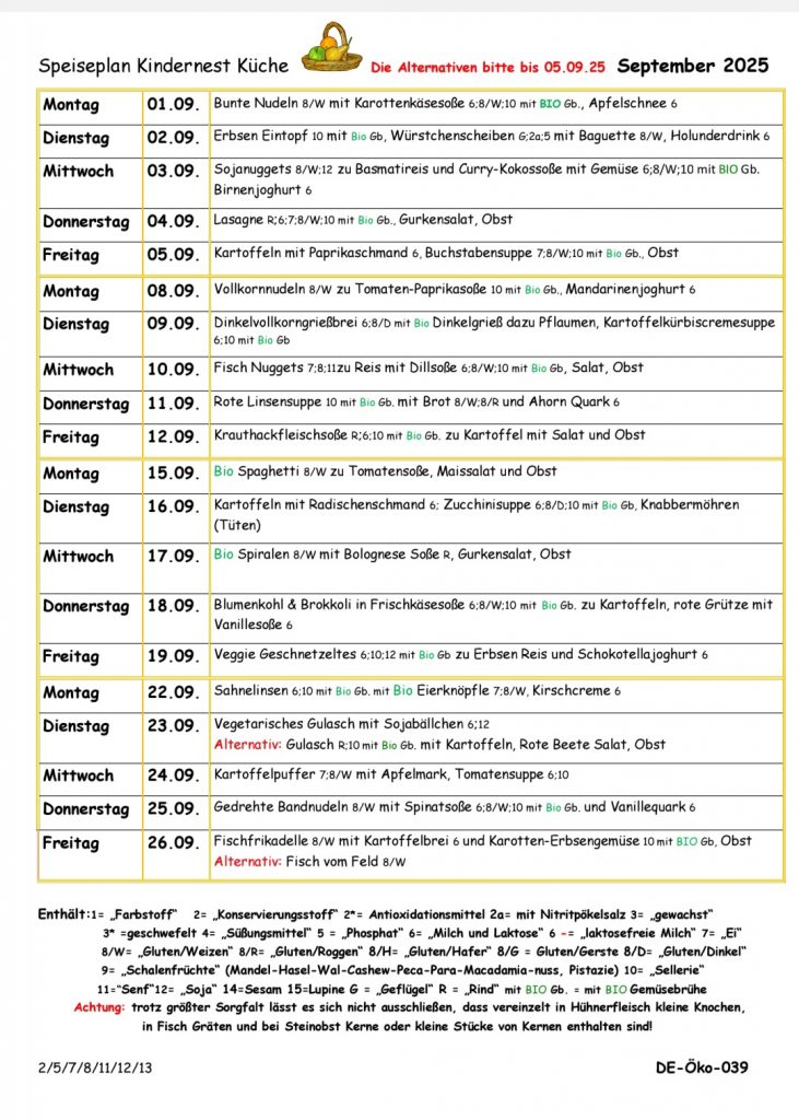 Speiseplan September 2025