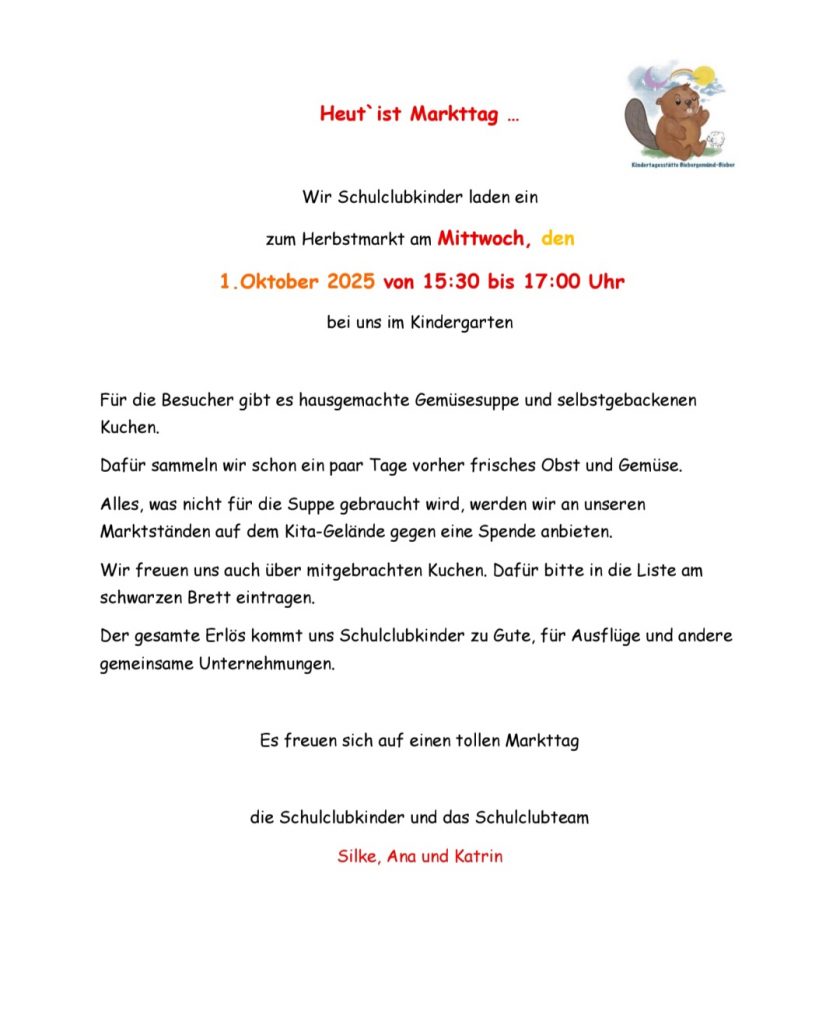 Fotos von unserem “ Markttag“ am 01.10.2025 in der Kita
