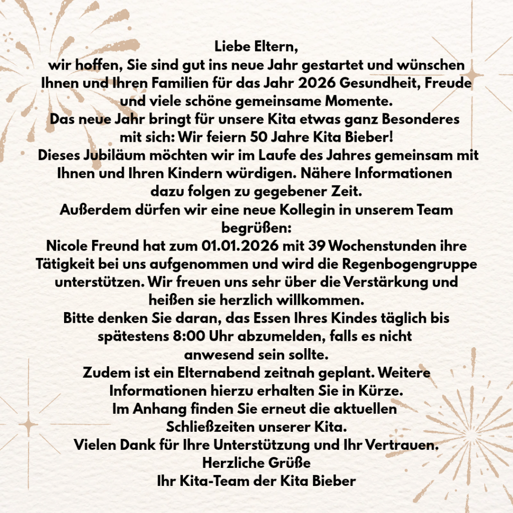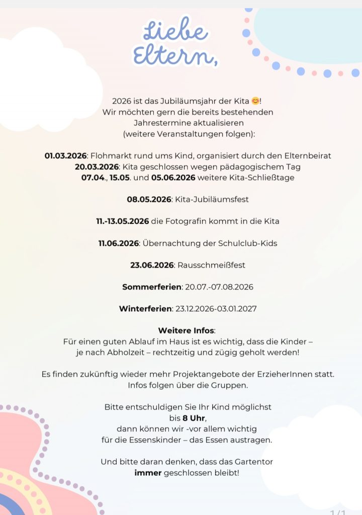 um immer auf dem Neusten Stand zu sein, können Sie hier alle aktuellen Informationen und Neues aus der Kita lesen. Bei Fragen können Sie sich gern jederzeit bei uns melden!